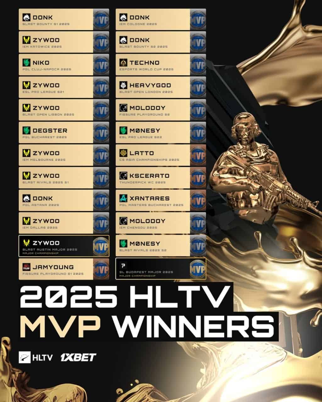 - IEM Melbourne: ZywOo (Vitality) – Avustralya’da kıta fethi.