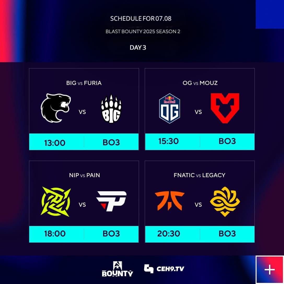 İşte BLAST Bounty Day 3’te günün tüm maç programı: