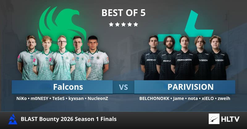 Counter-Strike 2 dünyasının merakla takip ettiği BLAST Bounty 2026 Sezon 1 Finalleri‘nde şampiyonluk düğümü çözülüyor. Hafta sonu boyunca süren kıyasıya rekabetin ardından finalistler belli oldu. 24 Ocak’taki yarı final eşleşmelerinin ardından, Falcons ve PARIVISION büyük finalde karşı karşıya gelmeye hak kazandı.