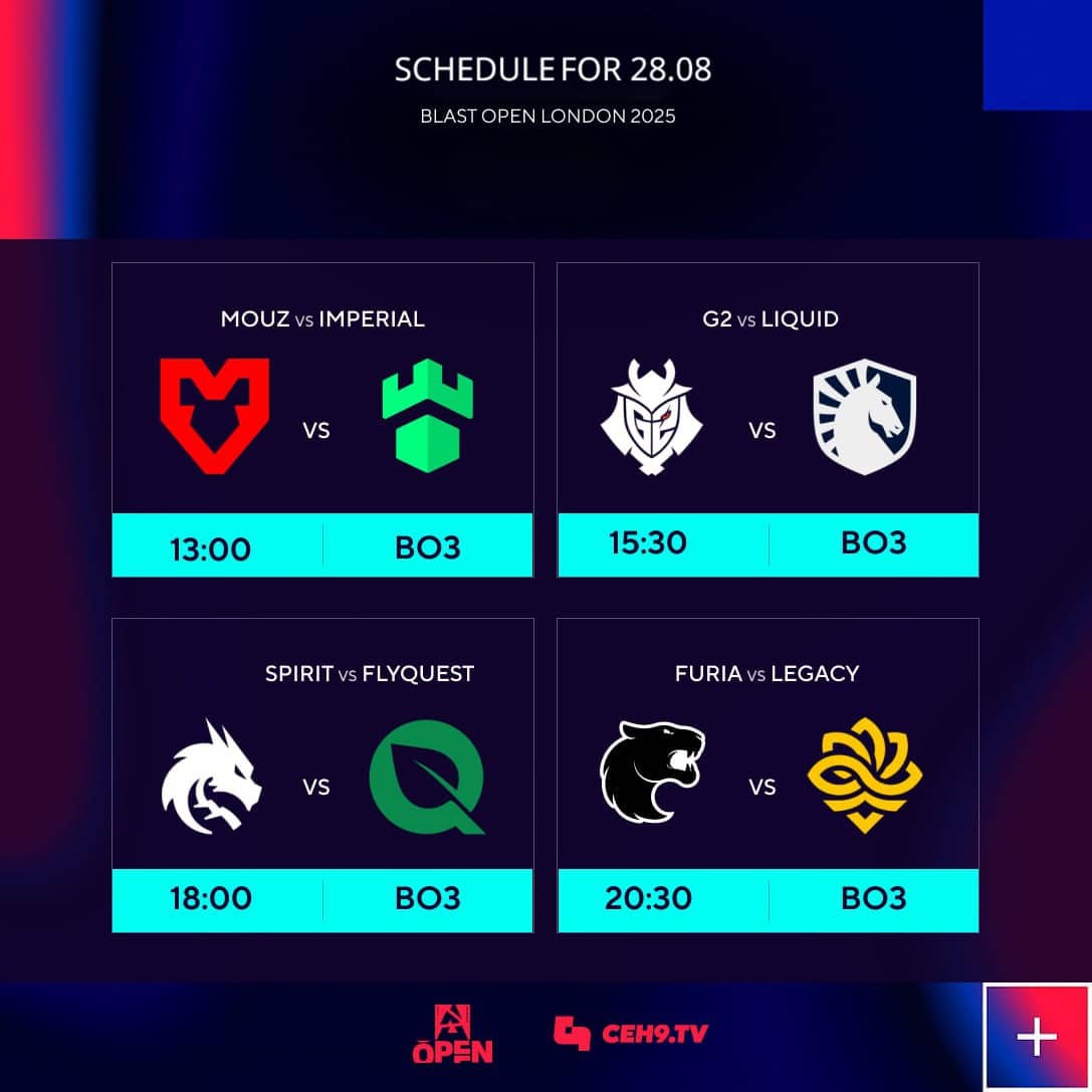 BLAST Open London 2025, 28 Ağustos günü birbirinden heyecanlı dört best-of-three (BO3) serisiyle devam ediyor. Dünyanın en iyi Counter-Strike takımları, ana aşamaya yükselmek için kıyasıya mücadele edecek.