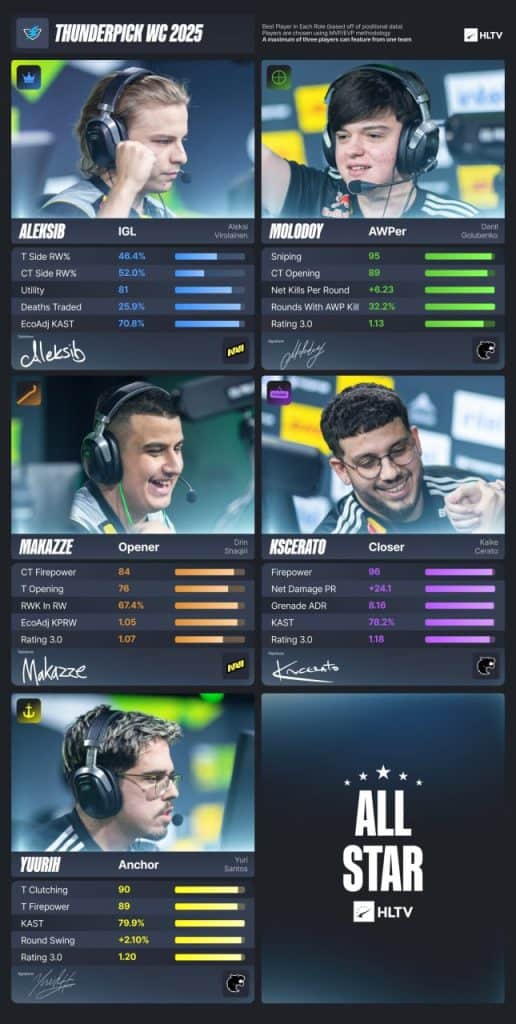 Üçüncü yer belirleyicisi olduğu için şanslı; Natus Vincere’e karşı sessiz 0.93 rating’li yarı finalden sonra ama Aurora’ya karşı üç harita serisinde 79 frag, 99.8 ADR ve 24 multi-kill ile net oyuncu haritasıydı.