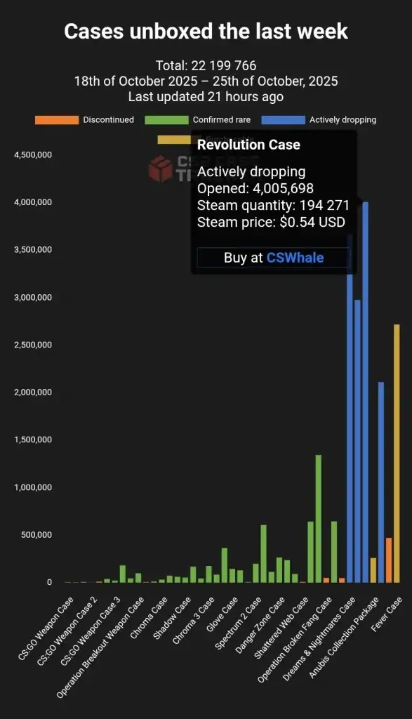 Gabe Follower’a göre, Eylül ayında CS2 oyuncuları yaklaşık 31 milyon kasa açmıştı. Güncellemenin üzerinden sadece üç gün geçmesine rağmen bu sayı 15 milyona ulaştı. Bu, normal ayın yarısı kadar bir hacme denk geliyor. Geri dönüş oranlarının kötüleşmesine rağmen, oyuncuların konteyner açma alışkanlığı devam ediyor, CS2’nin şans unsuruna olan bağlılığı bir kez daha kanıtlanıyor.