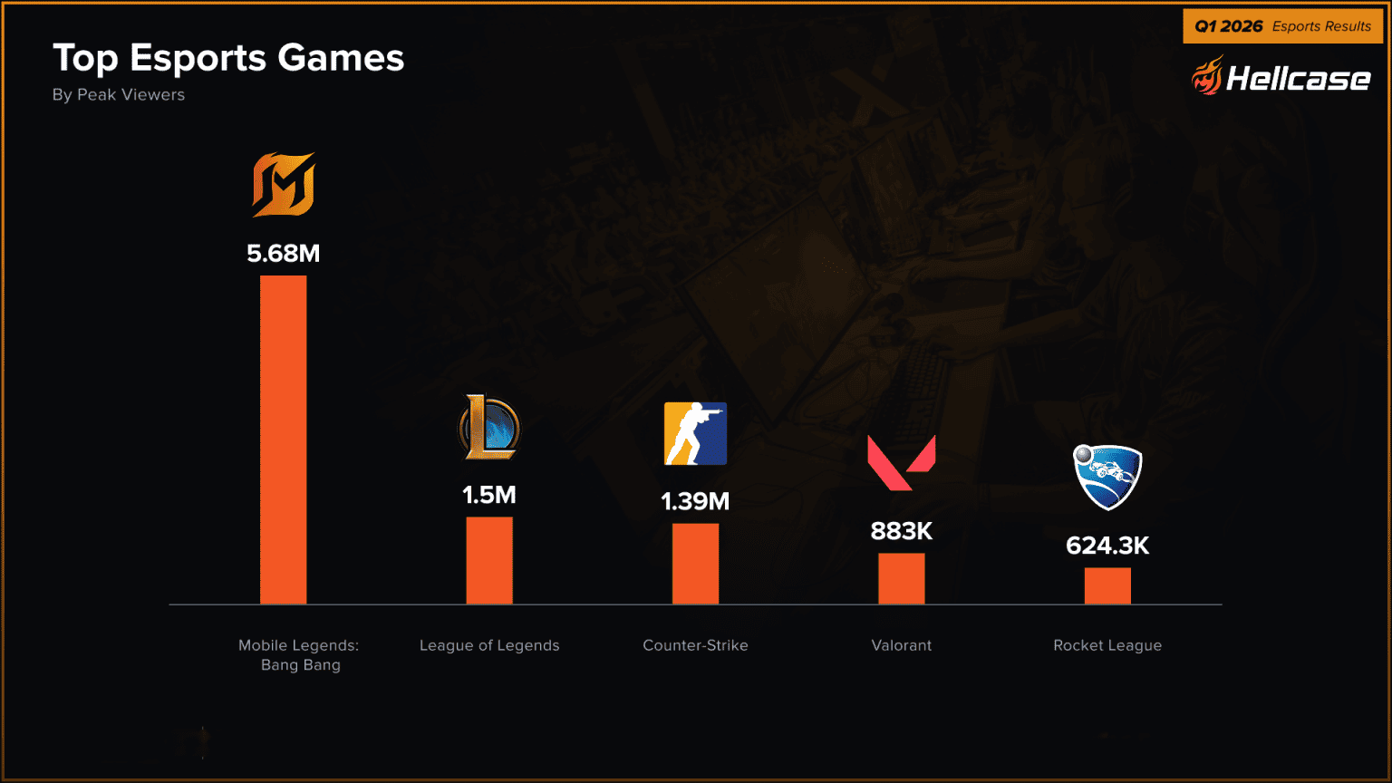 Zirvedeki en yüksek anlık izleyici sayısına ulaşma yarışında birincilik koltuğuna Mobile Legends: Bang Bang rahat bir şekilde oturdu. Oyun, M7 Dünya Şampiyonası (M7 World Championship) rüzgarını da arkasına alarak eşzamanlı tam 5,68 milyon izleyiciye ulaştı ve diğer tüm rakiplerine açık ara fark attı.