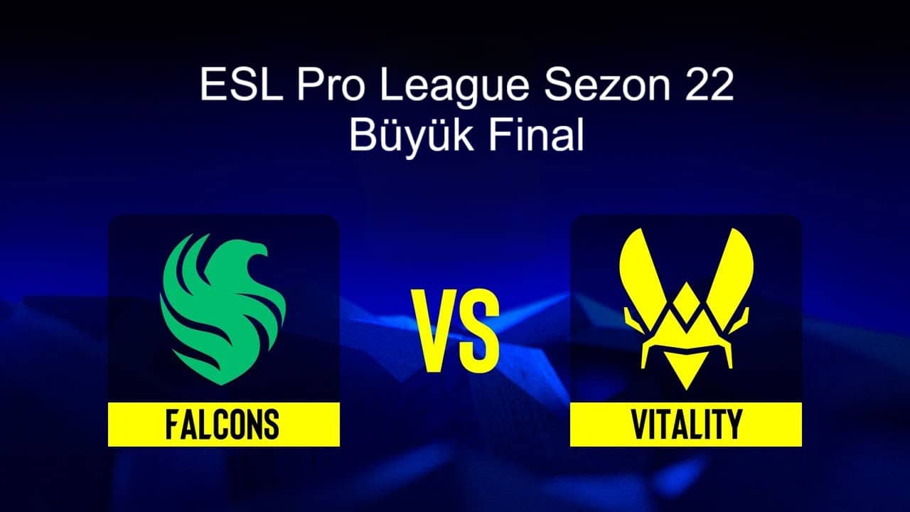 ESL Pro League Sezon 22’nin büyük finali, 12 Ekim 2025 Pazar günü saat 18:00’da (EEST) nefes kesen bir mücadeleyle start alıyor. Vitality ve Falcons, Counter-Strike sahnesinin en prestijli unvanı için kozlarını paylaşacak. Maç, 12/10 BO5 formatında oynanacak ve espor tutkunlarını ekran başına kilitleyecek.