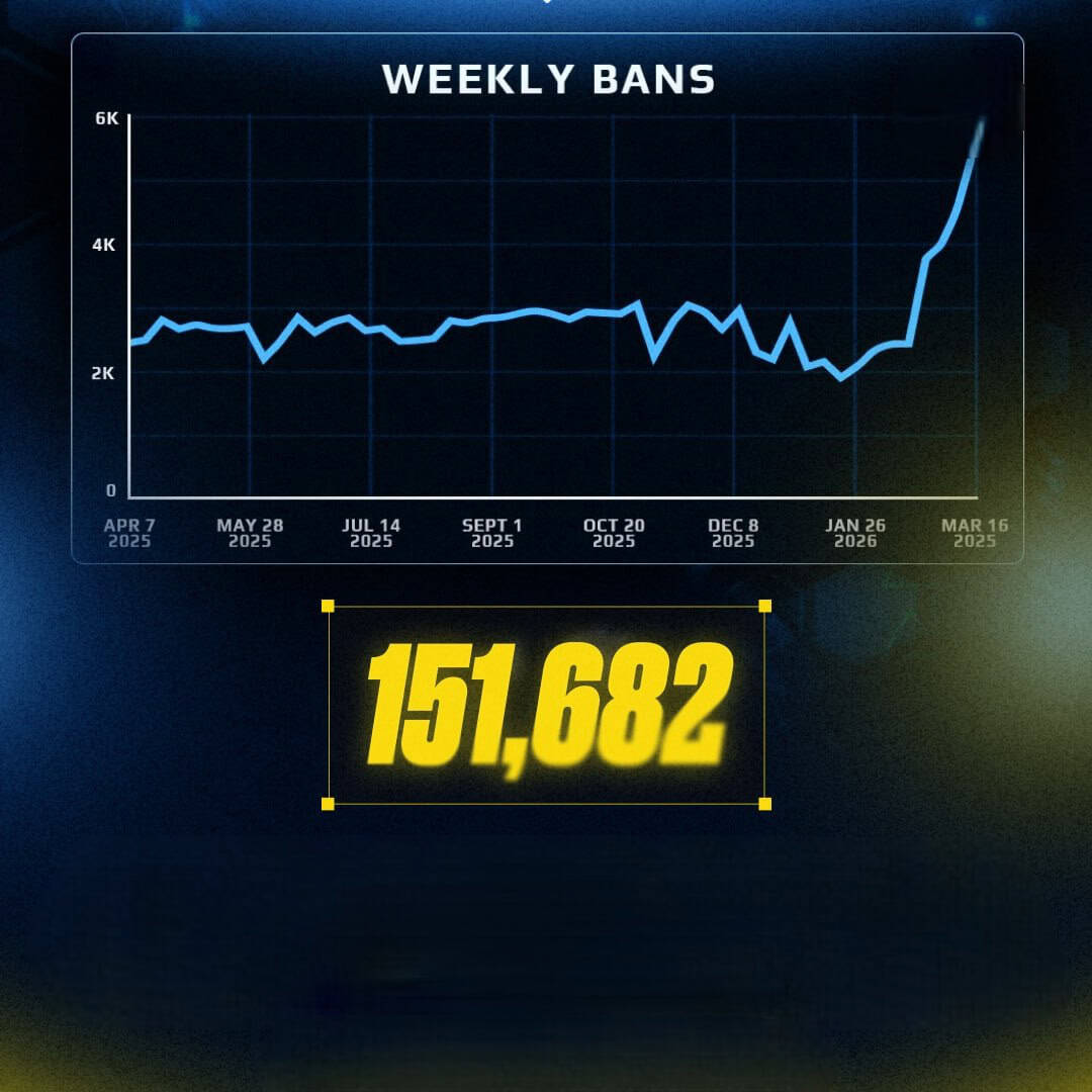 Giderek sıkılaşan denetimlerle birlikte haftalık ceza oranlarında yüzde 169’luk devasa bir artış yaşandı. FACEIT yetkilileri, uygulanan blokaj sayılarının 2026 yılında bu rekor rakamları bile aşabileceğini öngörüyor.