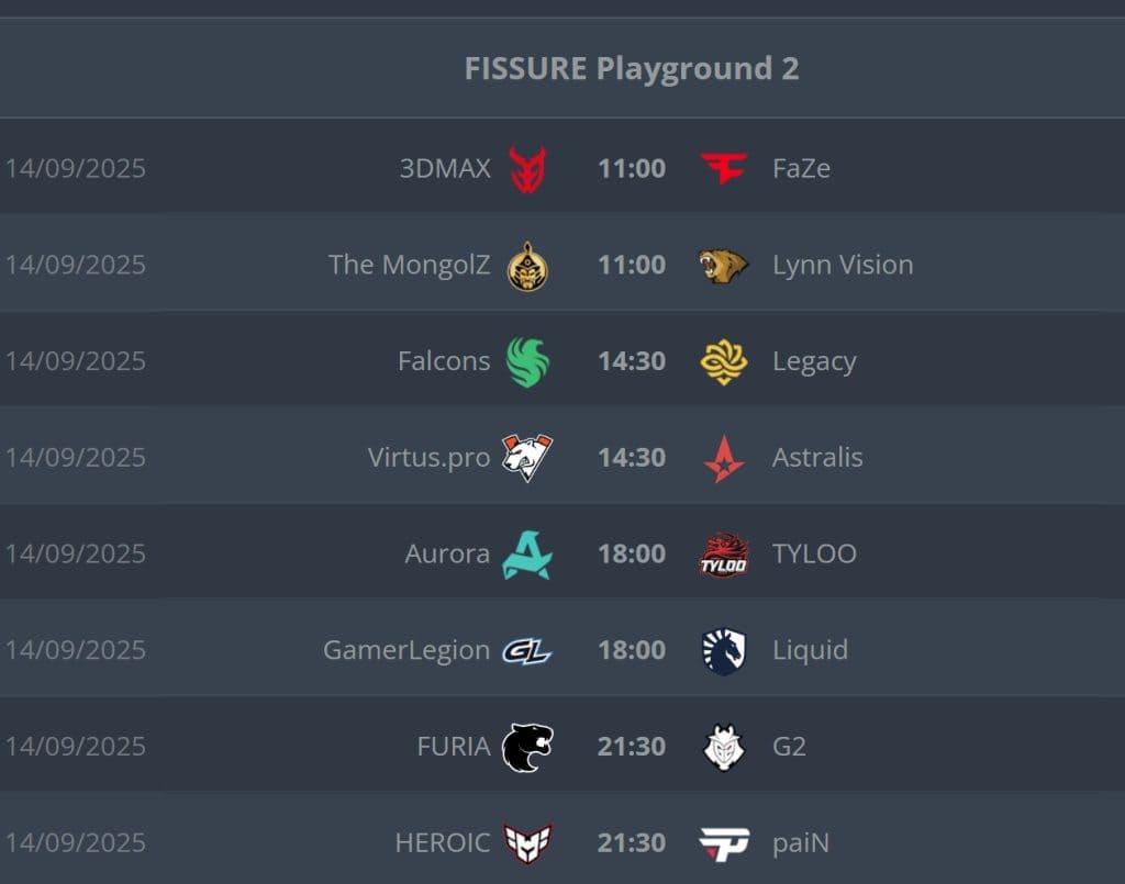 FISSURE Playground 2: 14 Eylül 2025 Maç Programı ve Dev Eşleşmeler
