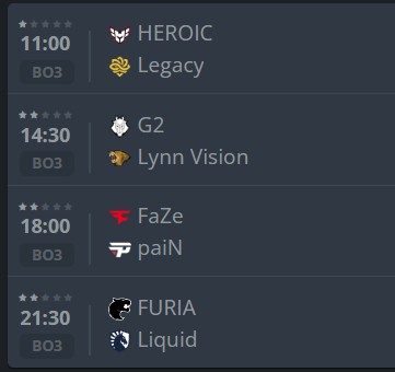 Günün açılış mücadelesinde Avrupa’nın güçlü temsilcisi HEROIC, Legacy karşısında sahaya çıkacak. BO3 formatındaki bu seri, turnuvanın gidişatı için kritik öneme sahip. - 14:30 | G2 vs Lynn Vision