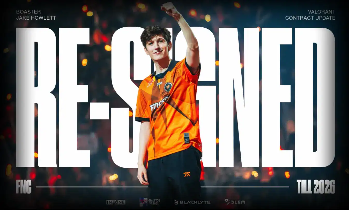 Fnatic, VALORANT oyuncusu Jake ‘Boaster’ Howlett’ın 2026 VCT sezonu için sözleşmesini yenilediğini duyurdu. İngiliz oyun içi lider (IGL), 2021 başından beri organizasyonun bir parçası ve son olarak VALORANT Champions 2025’te Fnatic ile ikinci sırayı elde etti.