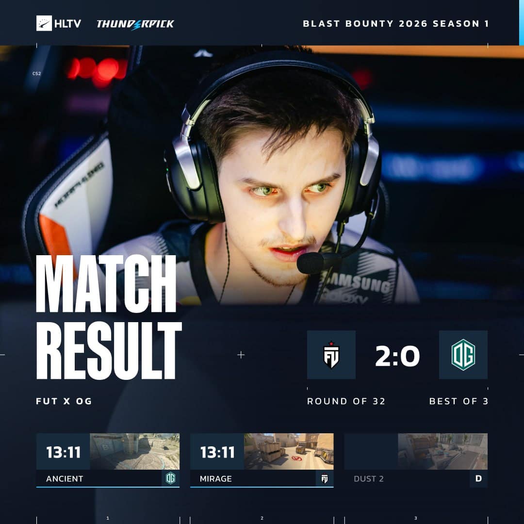 Türk esporunun güçlü temsilcisi FUT Esports, BLAST Bounty 2026 Sezon 1 kapsamında çıktığı kritik mücadeleden zaferle ayrıldı. Son 32 turunda Avrupa’nın köklü ekiplerinden OG ile karşılaşan temsilcimiz, seriyi 2-0 kazanarak turnuvaya harika bir başlangıç yaptı.