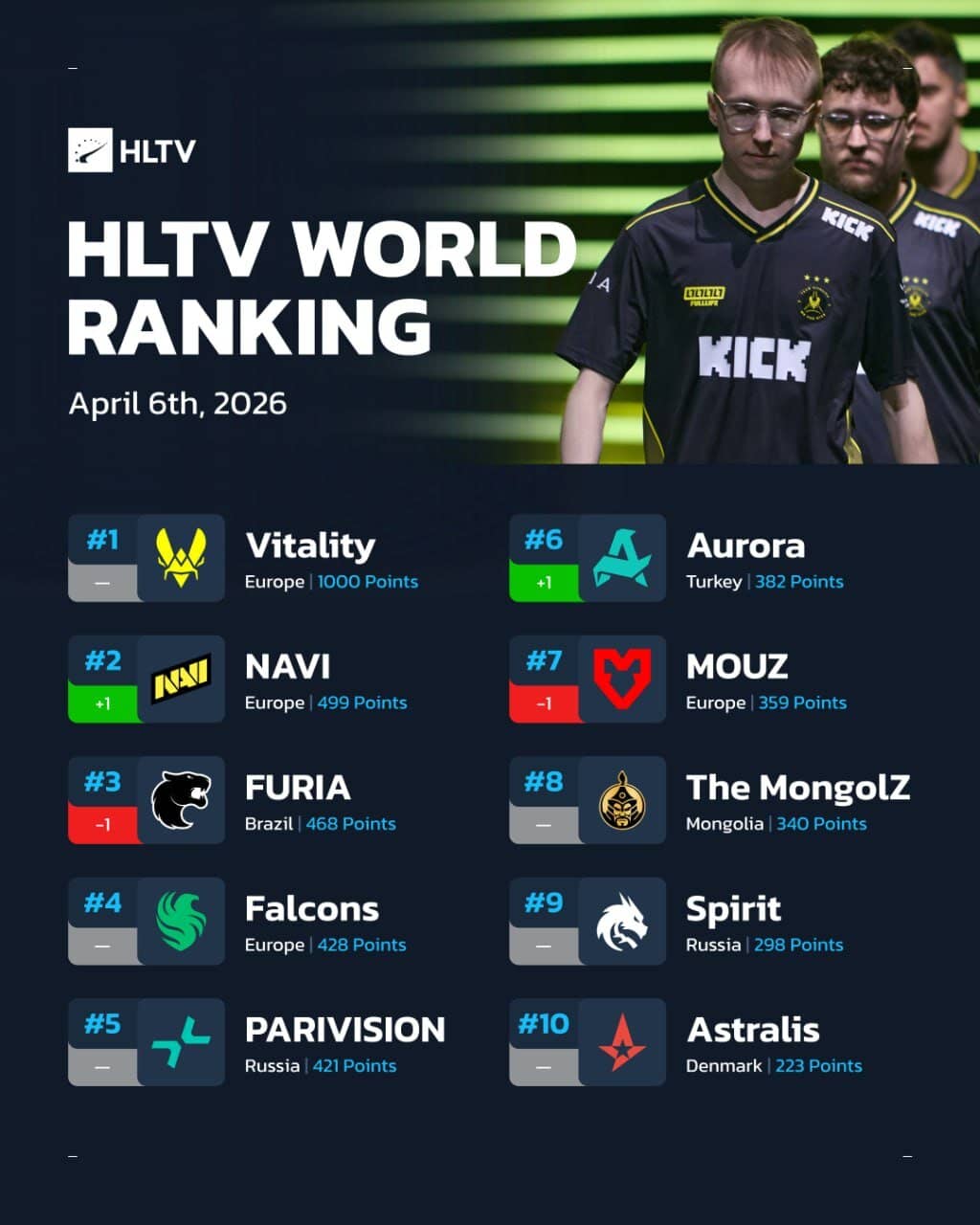 İşte 6 Nisan 2026 tarihli güncel HLTV Top 10 dünya sıralaması: