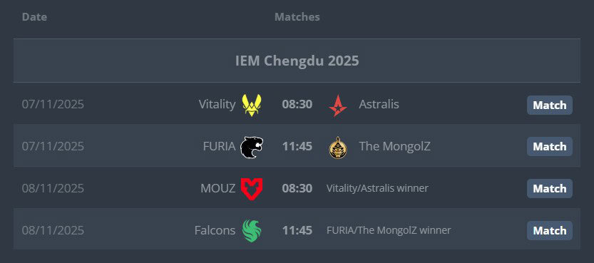 - 08:30 — MOUZ vs (Vitality/Astralis galibi)