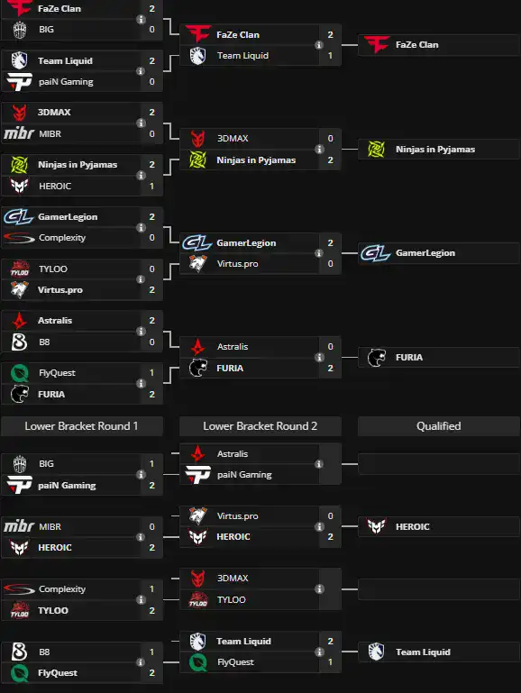 FlyQuest ve Virtus.pro, ana aşamaya kalamadan turnuvaya veda etti. Her iki ekip de 4.500 dolar ödül kazandı.