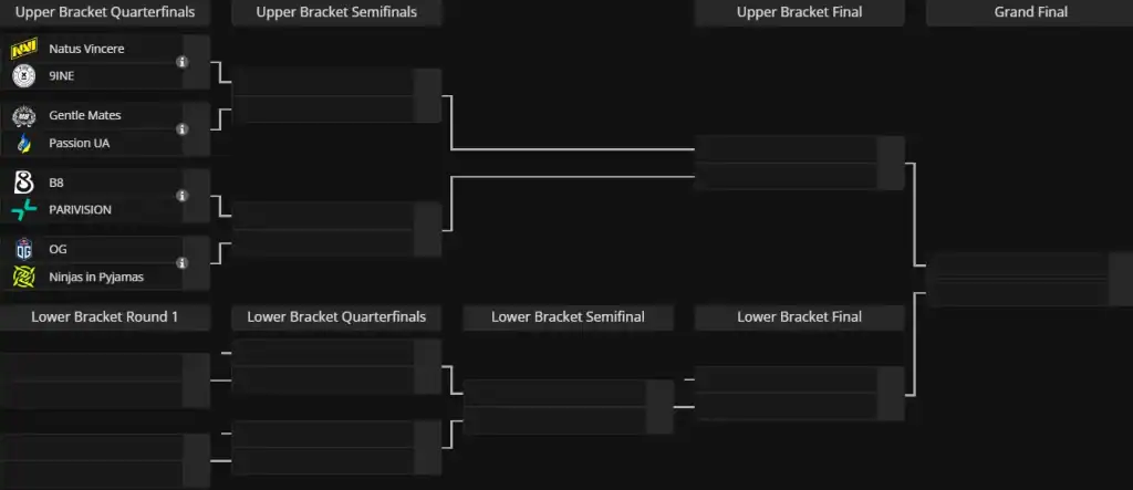 Tüm maçlar, çift eleme (Double-Elimination) formatında ve üç maçlık seri (Bo3) şeklinde oynanacak. Şu an için sonraki turların tarih ve saatleri henüz açıklanmadı.