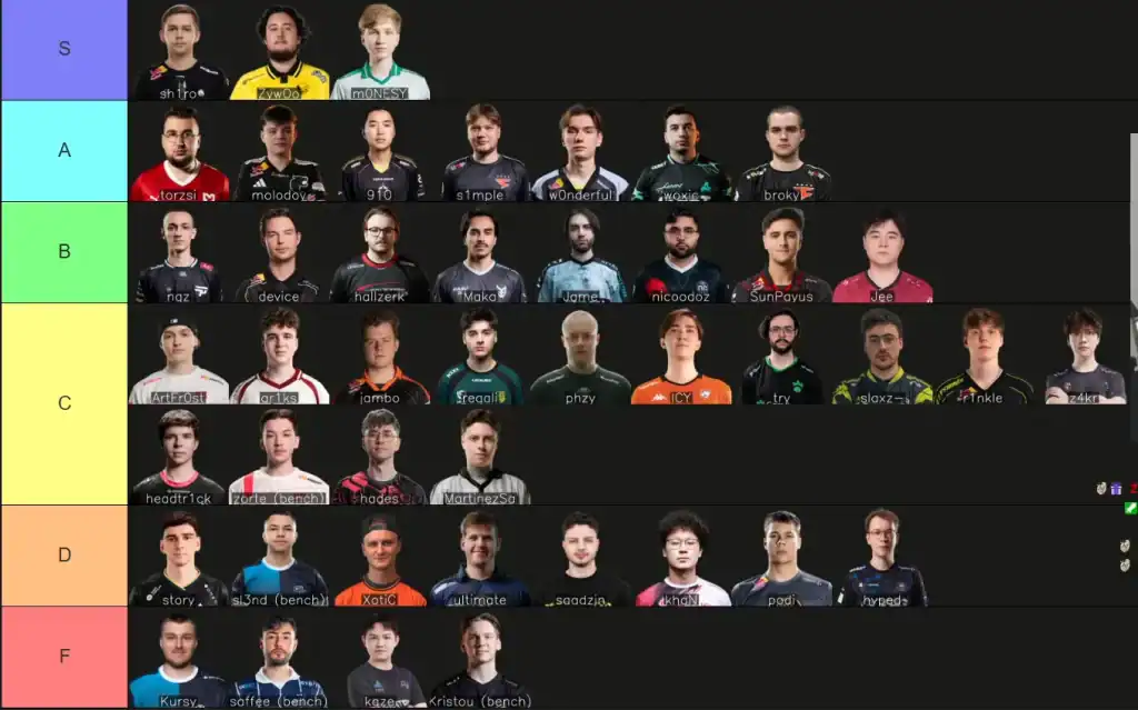 - A Tier: torzsi, molodoy, 910, s1mple, w0nderful, woxic, broky