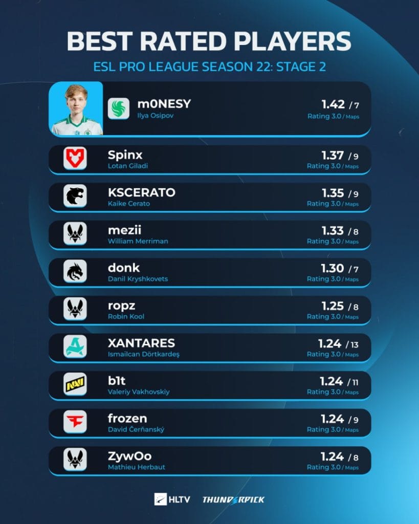 - m0NESY (Ilya Osipov – G2 Esports) – 1.42 Rating / 7 Harita